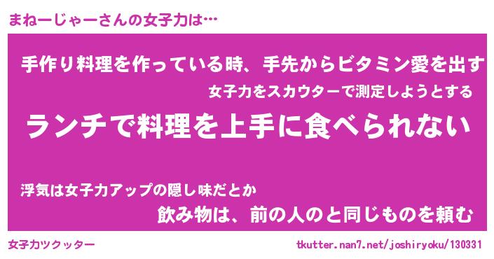 | (((^_^;)(((^(略 …「あかさたなはまやらわ」 | 2月13日 08:59 |