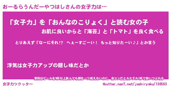| 女子向けラノベタイトル風あだ名 | 『おーるらうんだーやつはし姫と円卓の騎士』 |
