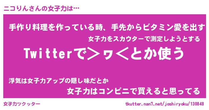 | ヘコむあだ名 | 『ニコもー』『つくし』『ニコお』 |
