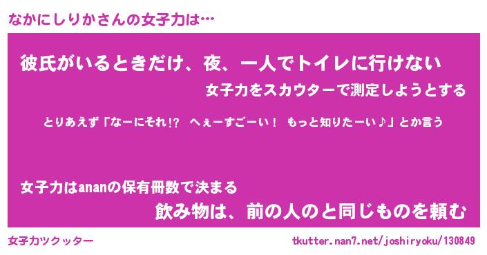 | ヘコむあだ名 | 『なかにゅー』『なまこ酢』 |