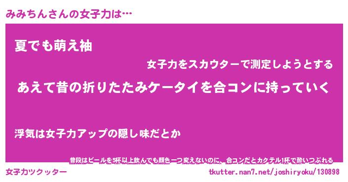 | ヘコむあだ名 | 『みみふぇ~』『牛乳』『みみっ子』 |