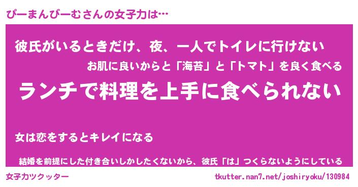 | ヘコむあだ名 | 『ぴーふぇ~』『なまこ酢』 |