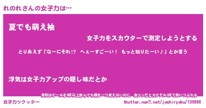 | ヘコむあだ名 | 『れのもー』『酢こんぶ』 |