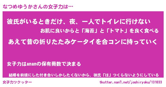 | 意味不明あだ名 | 『ペロリンなつめゆうか』 |
