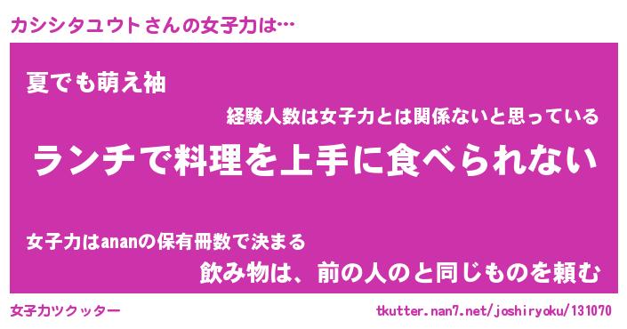 | 恥ずかしいあだ名 | 『プリティーカシシタユウト』『カシちん』 |