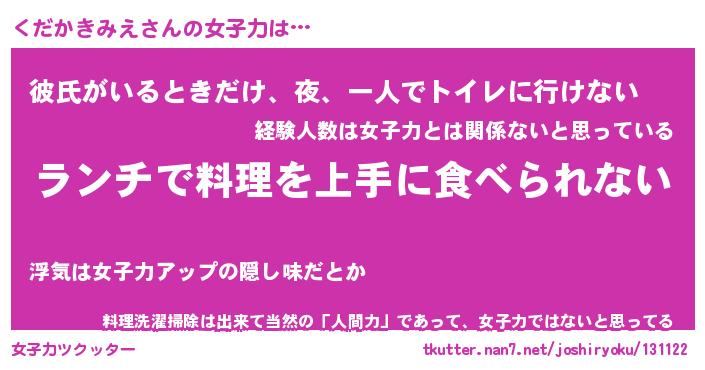 | ヘコむあだ名 | 『くだもー』『なまこ酢』『くだっ子』 |