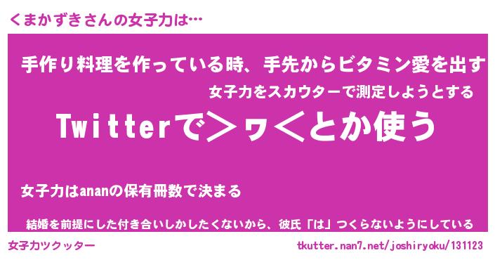 | ヘコむあだ名 | 『くまもー』『つくし』『くまお』 |
