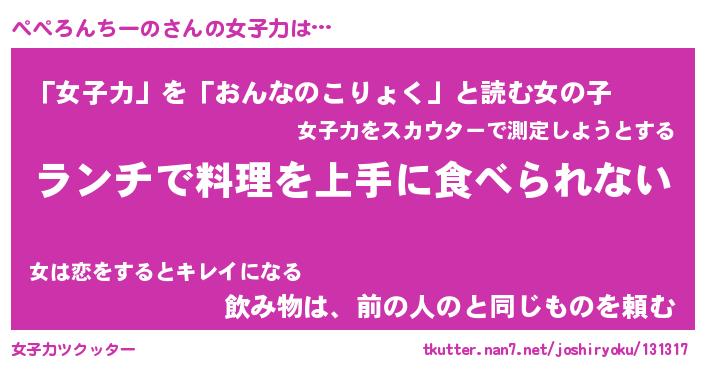 ぺぺろんちーのさんの女子力をツクッター!
