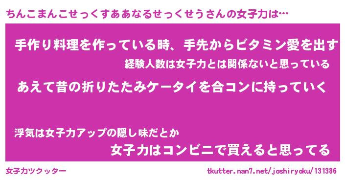 | ヘコむあだ名 | 『ちんふぇ~』『つくし』『ちん太郎』 |