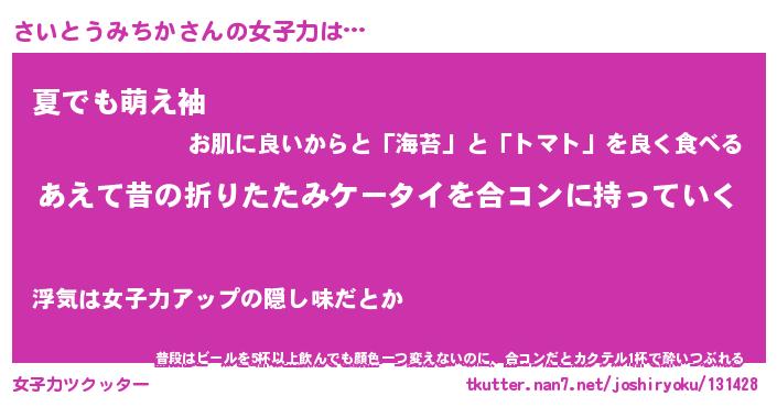 | 胡散臭い通販商品みたいなあだ名 | 『必ず成功するブレスレット…その名も「さいとうみちか」』 |