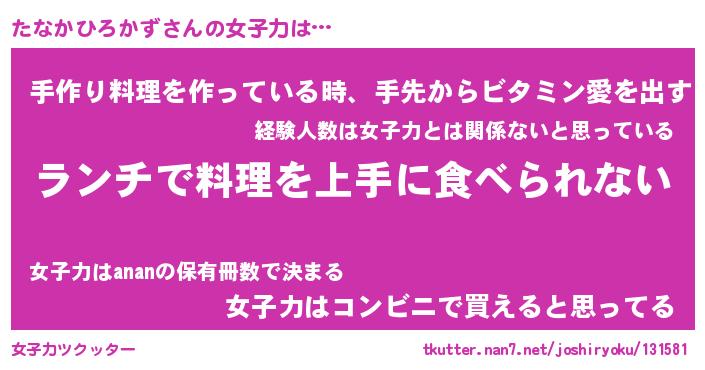 | 肩書あだ名 | 『たなかひろかず御曹司』 |