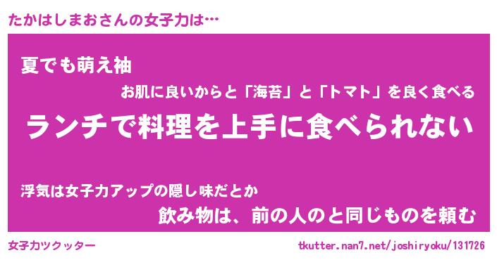 | 胡散臭い通販商品みたいなあだ名 | 『億万長者になれるブレスレット…その名も「たかはしまお」』 |