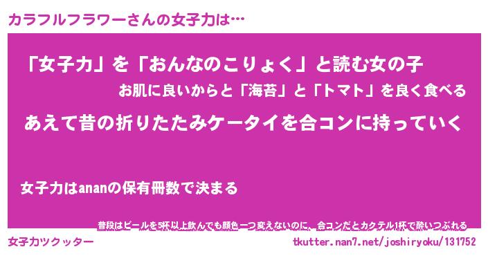 | 男性向けラノベタイトル風あだ名 | 『カラフルフラワーの憂鬱』 |