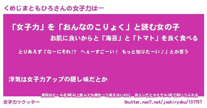 | ヘコむあだ名 | 『くめにー』『つくし』『くめを』 |