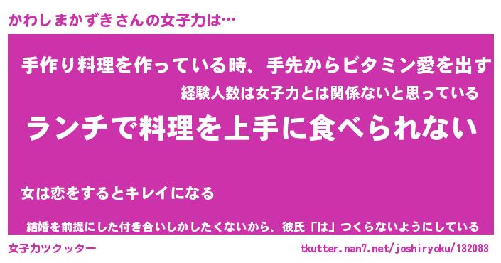| ヘコむあだ名 | 『かわふぇ~』『牛乳』『かわっちょ』 |