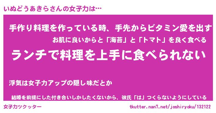 | 料理風あだ名 | 『ネギたっぷりいぬどうあきらの南蛮漬け』 |
