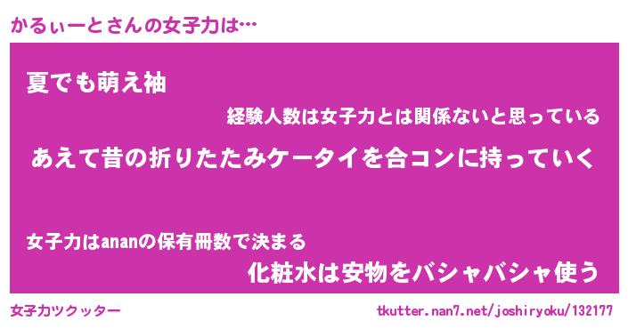 | ヘコむあだ名 | 『かるにー』『豆乳』『かるお』 |