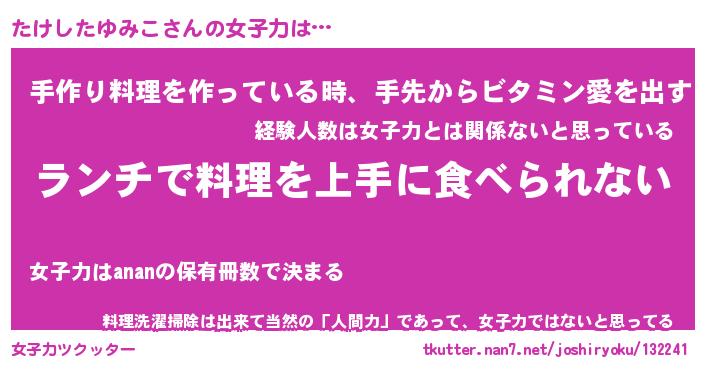 | ヘコむあだ名 | 『たけにゅー』『つくし』『たけっぺ』 |