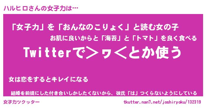 | ファンタジー風あだ名 | 『ハルフェル』『エターナルハルヒロー』 |