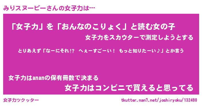 | ヘコむあだ名 | 『みりふぇ~』『酢こんぶ』『みりお』 |