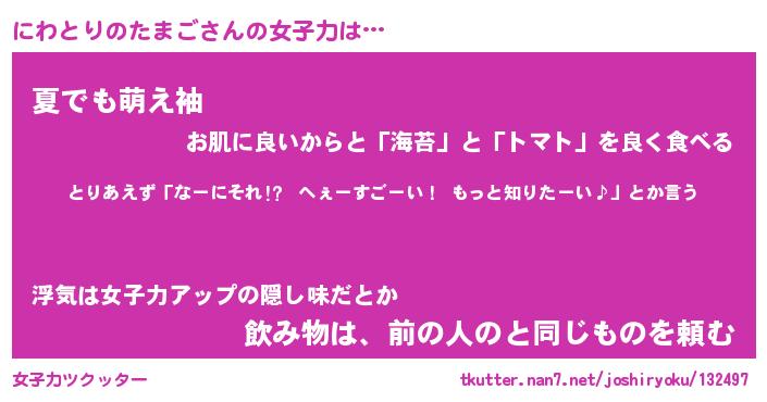 | ヘコむあだ名 | 『にわふぇ~』『なまこ酢』 |