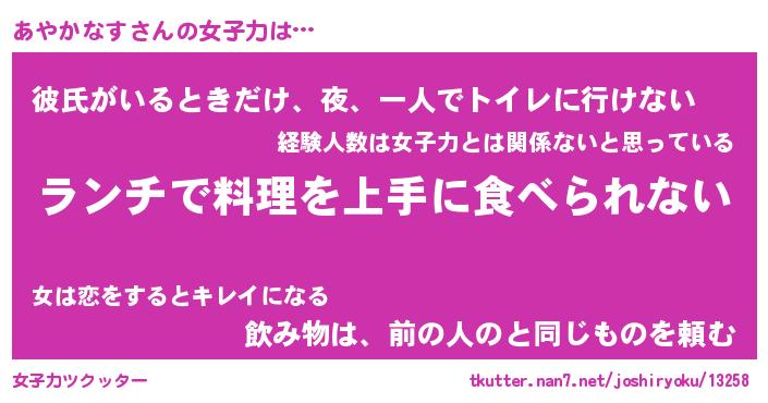 | ヘコむあだ名 | 『あやにー』『なまこ酢』『あやっ子』 |