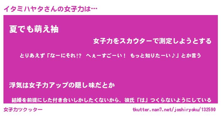 | ヒーロー風カッコイイあだ名 | 『スーパーイタミハヤタ』『暗黒騎士イタ』 |