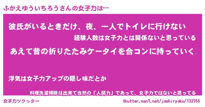 | ヘコむあだ名 | 『ふかっふぃ~』『豆乳』『ふかっ子』 |
