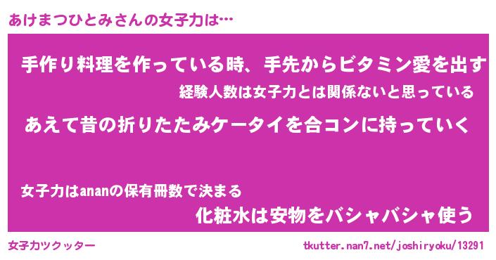 | 恥ずかしいあだ名 | 『プリティーあけまつひとみ』『あけちん』 |
