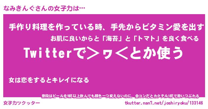 | ファンタジー風あだ名 | 『ナミフェル』『エターナルナミキングー』 |