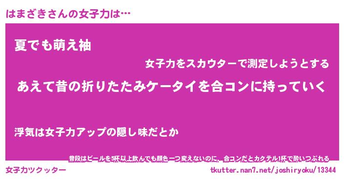 | ヘコむあだ名 | 『はまにー』『つくし』『はま太郎』 |