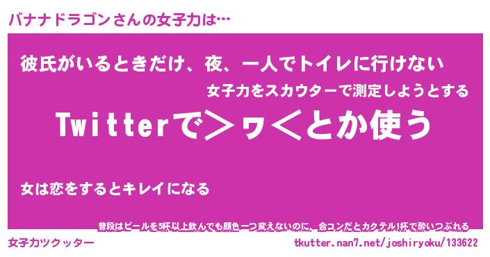 | 男性向けラノベタイトル風あだ名 | 『バナナドラゴンの憂鬱』 |