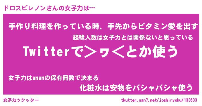 | 男性向けラノベタイトル風あだ名 | 『ドロスピレノンの憂鬱』 |