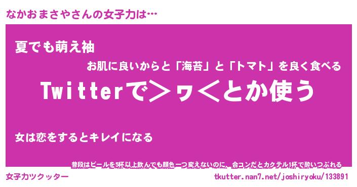 | 恥ずかしいあだ名 | 『プリティーなかおまさや』『なかっちょ』 |