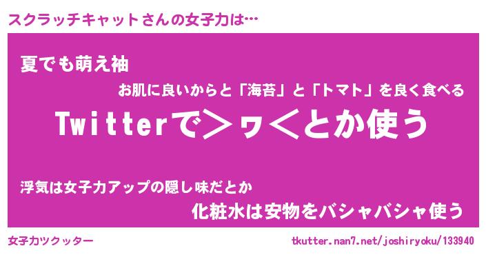 | 胡散臭い通販商品みたいなあだ名 | 『モテモテ間違いなし霊験あらたかなお札…その名も「スクラッチキャット」』 |