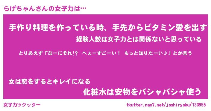 | 胡散臭い通販商品みたいなあだ名 | 『億万長者になれるブレスレット…その名も「らげちゃん」』 |