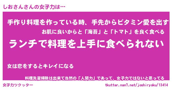 | ヘコむあだ名 | 『しおっふぃ~』『牛乳』『しおお』 |