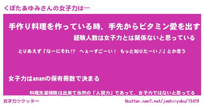 | ヒーロー風カッコイイあだ名 | 『スーパークボタアユミ』『炎刃騎士クボ』 |