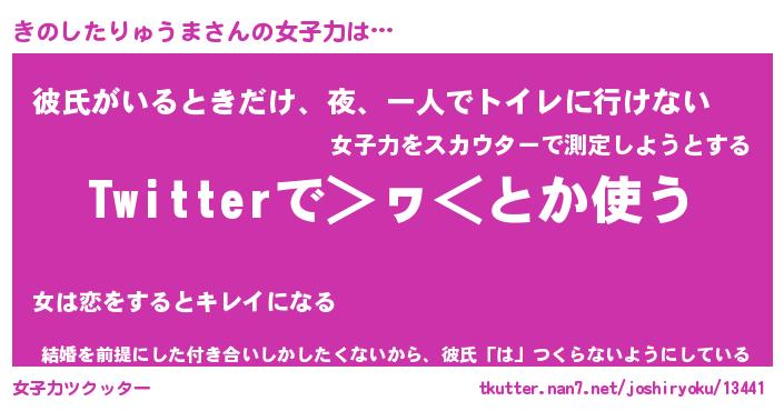 | 女子向けラノベタイトル風あだ名 | 『きのしたりゅうま姫と円卓の騎士』 |