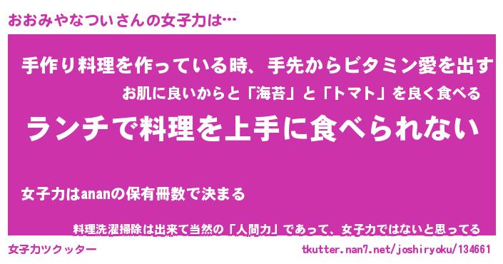 | 恥ずかしいあだ名 | 『プリティーおおみやなつい』『おおちん』 |
