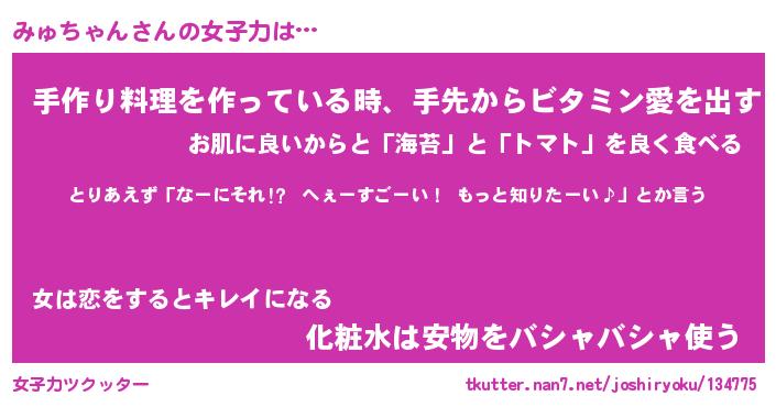 | ファンタジー風あだ名 | 『ミュフェル』『エターナルミュチャンー』 |