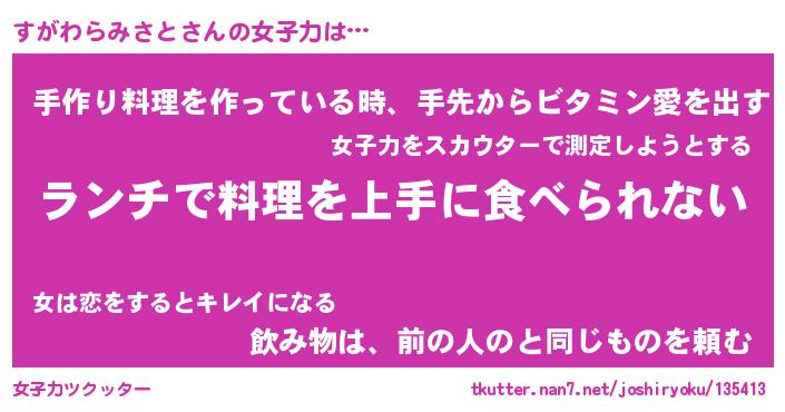 | ヘコむあだ名 | 『すがふぇ~』『つくし』『すがっぺ』 |