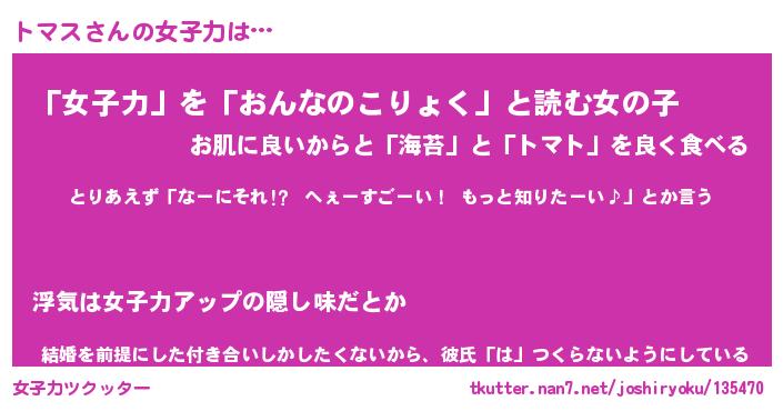 | 恥ずかしいあだ名 | 『プリティートマス』『トマっちょ』 |