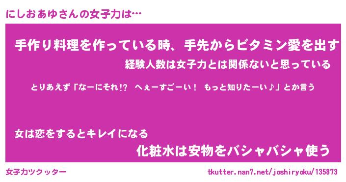 | ヘコむあだ名 | 『にしっふぃ~』『酢こんぶ』 |