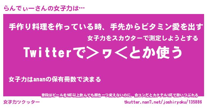 | ヘコむあだ名 | 『らんにー』『つくし』『らんを』 |