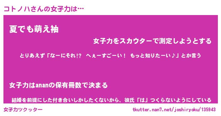 | 意味不明あだ名 | 『ペロリンコトノハ』『永久保存コトノハ』 |