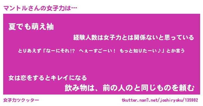 | 意味不明あだ名 | 『ペロリンマントル』『永久保存マントル』 |