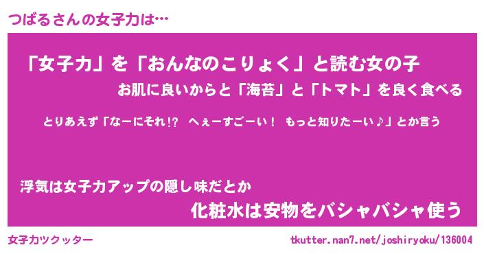 | ファンタジー風あだ名 | 『ツバフェル』『エターナルツバルー』 |