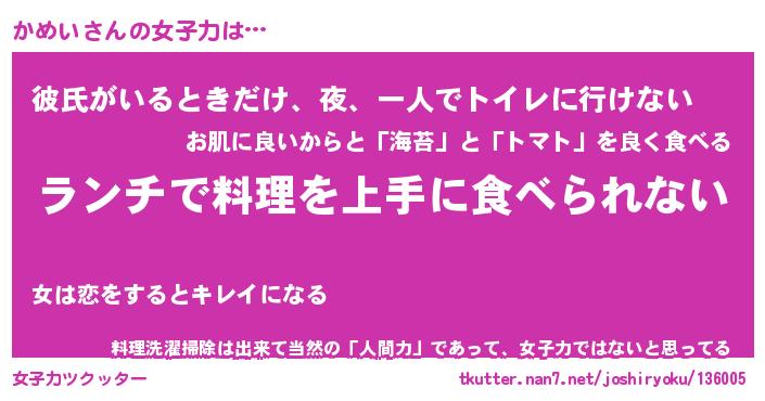 | ファンタジー風あだ名 | 『カメフェル』『エターナルカメイー』 |