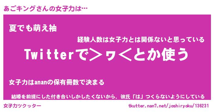 | ファンタジー風あだ名 | 『アゴフェル』『エターナルアゴキングー』 |